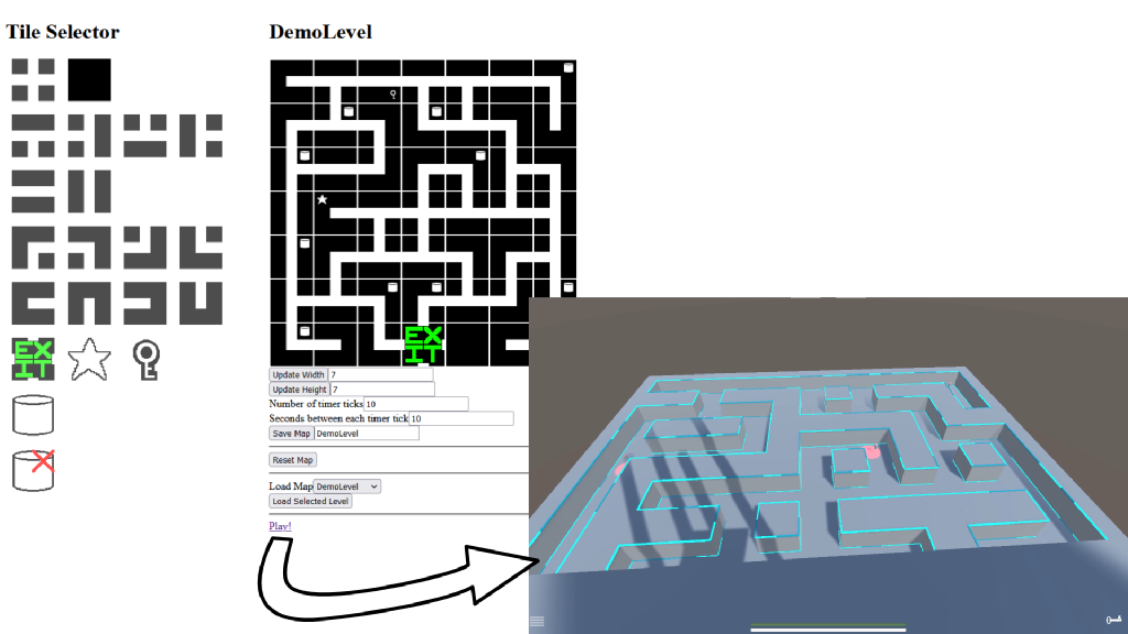 Users can create and save levels in the browser and then play their level right away in the browser. Clicking “Play” launches an instance of Escape in a separate browser tab with the level pre-loaded.