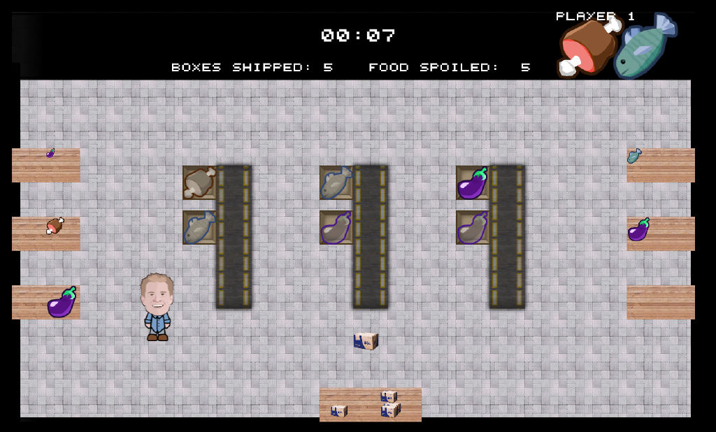 Packline Panic is a meal kit packline simulation game inspired by Diner Dash. The game was created as part of a company hackathon.